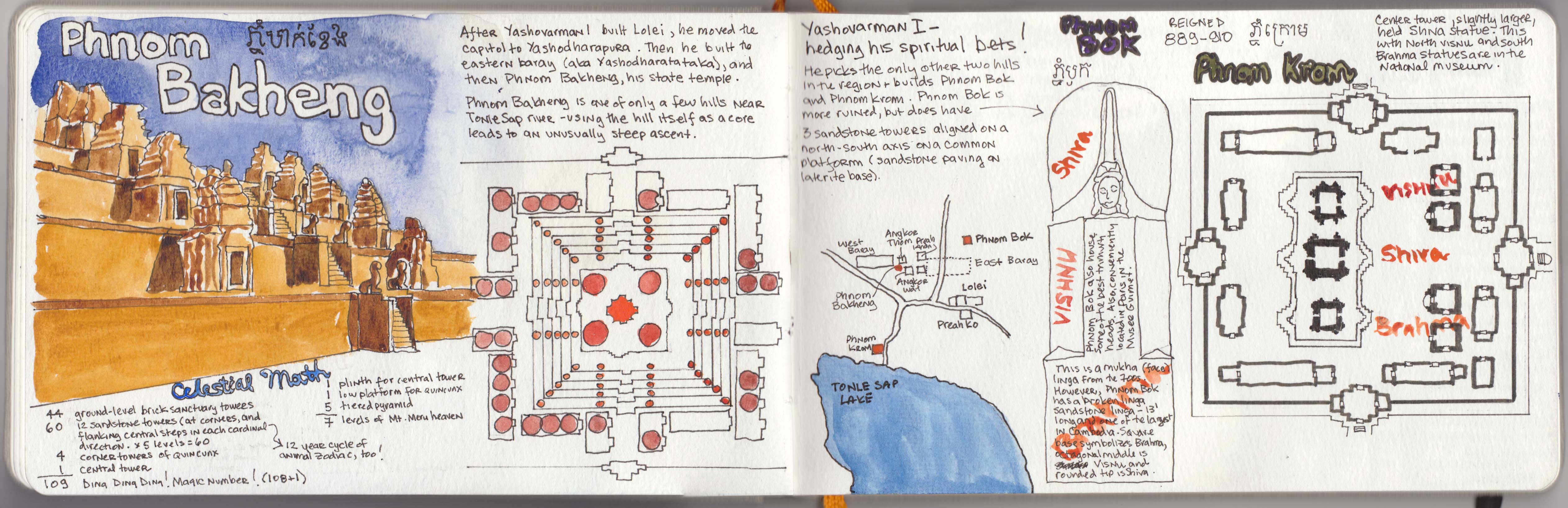 These are study drawings I made in anticipation of a February 2013 month-long trip to Cambodia. For me, drawing is good way to learn. My purpose was to have some knowledge of the Khmer temples and archeology before I arrived in Cambodia. Most of the drawings are based on photographic references in books. A few (SAAM Vishnu, and another vishnu) were drawn directly from objects owned by the Seattle Asian Art Museum (SAAM).