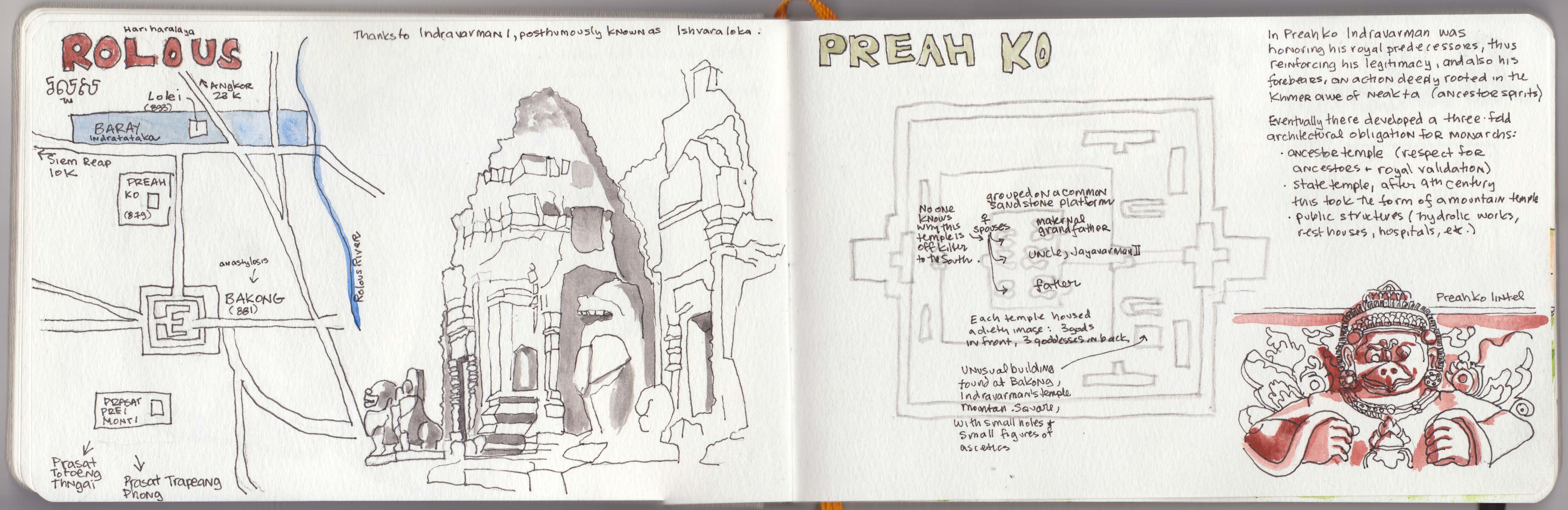 These are study drawings I made in anticipation of a February 2013 month-long trip to Cambodia. For me, drawing is good way to learn. My purpose was to have some knowledge of the Khmer temples and archeology before I arrived in Cambodia. Most of the drawings are based on photographic references in books. A few (SAAM Vishnu, and another vishnu) were drawn directly from objects owned by the Seattle Asian Art Museum (SAAM).